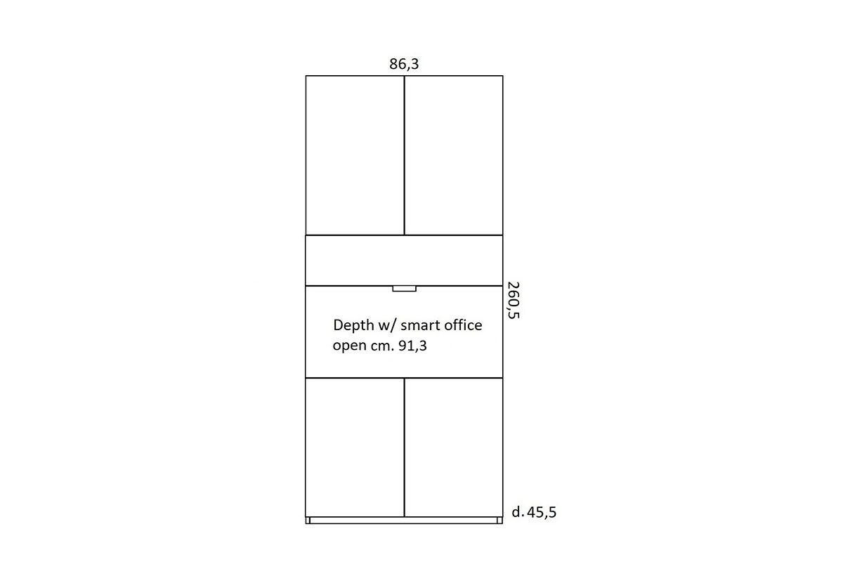 Anta apribile per consentire un maggior sfruttamento dello spazio dedicato alle attrezzature che completano lo smart office. Folding door to allow greater exploitation of space dedicated to equipment that complements the smart office.
