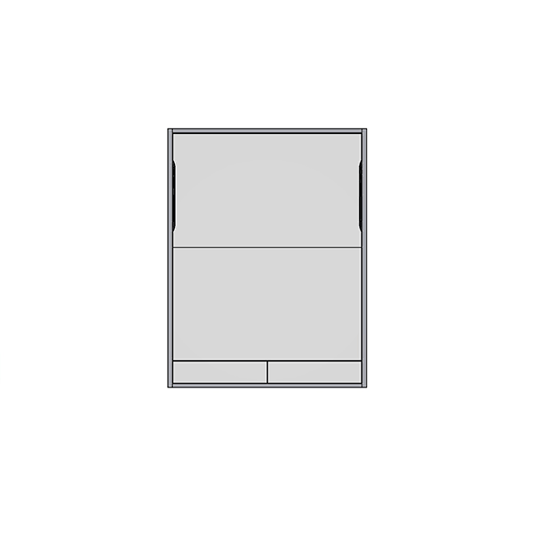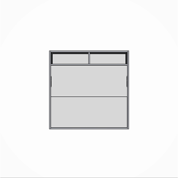 Letto matrimoniale a scomparsa mod. SPACE con apertura orizzontale e vani superiori.