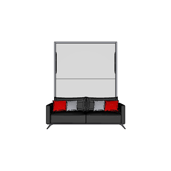 Letto matrimoniale a scomparsa mod. SPACE con apertura orizzontale e divano mod. DREAM.