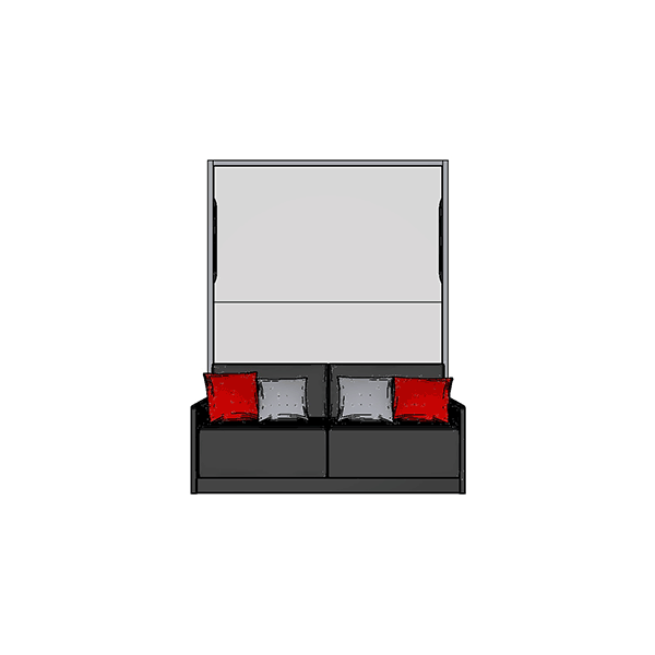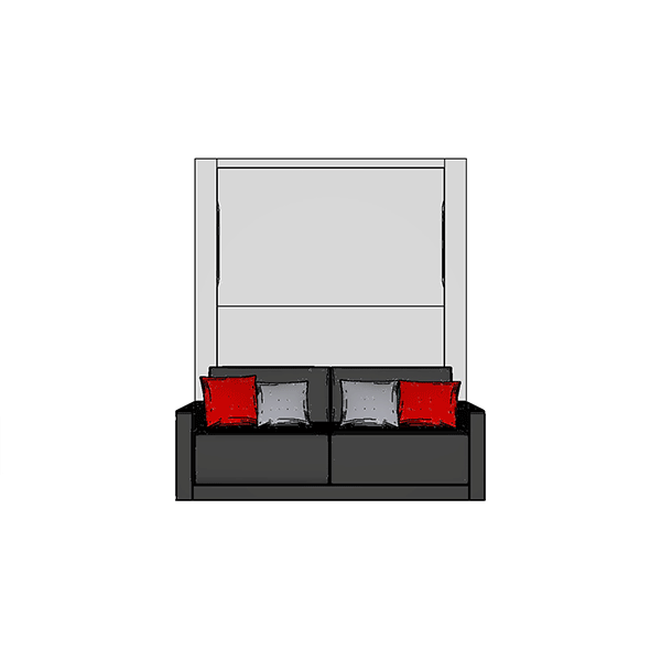 Letto matrimoniale a scomparsa mod. SPACE con apertura orizzontale e divano mod. TETRIS.