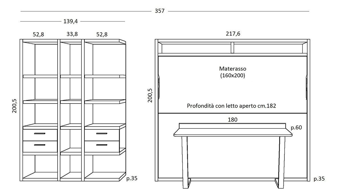 LIBRERIA SOPRA IL LETTO permette lo sviluppo in altezza senza perdere la prerogativa del contenimento e dello sfruttamento di tutti gli spazi. I vani possono essere aperti oppure chiusi con ante a ribalta o battenti, con push/pull o maniglia.