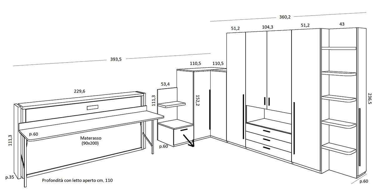 OPLÀ non è soltanto un letto. Esso combina un comodo letto singolo con un ampio scrittoio – la sua larghezza, infatti, raggiunge i 229,6 cm, cosa alquanto unica! Tutto ciò è guidato da un meccanismo funzionale che ne regola il movimento: a letto aperto, infatti, l’ingombro dello scrittoio occupa la parte soprastante evitando così lo sgombero dal piano ogni qualvolta si voglia aprire il letto. Apertura e chiusura del letto e dello scrittoio sono entrambe assistite da pistoni a gas. Comodità ed efficienza sono inoltre garantite dalla gestione a “letto pronto” permesso grazie al calcolo degli ingombri delle coperte in fase di progettazione. La rete, a doghe in legno con bande elastiche, favorisce la traspirazione del materasso e lo supporta per donare maggiore comfort.